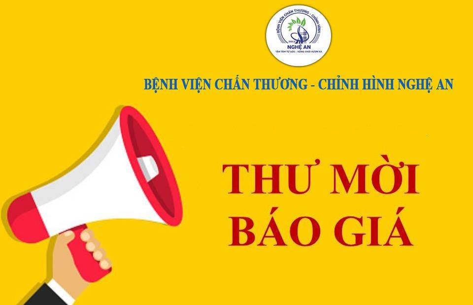 Thư mời chào cấu hình, thông số kỹ thuật và giá cho các mặt hàng hóa chất, vật tư y tế mua sắm bổ sung năm 2025-2026 tại Bệnh viện Chấn thương – Chỉnh hình Nghệ An