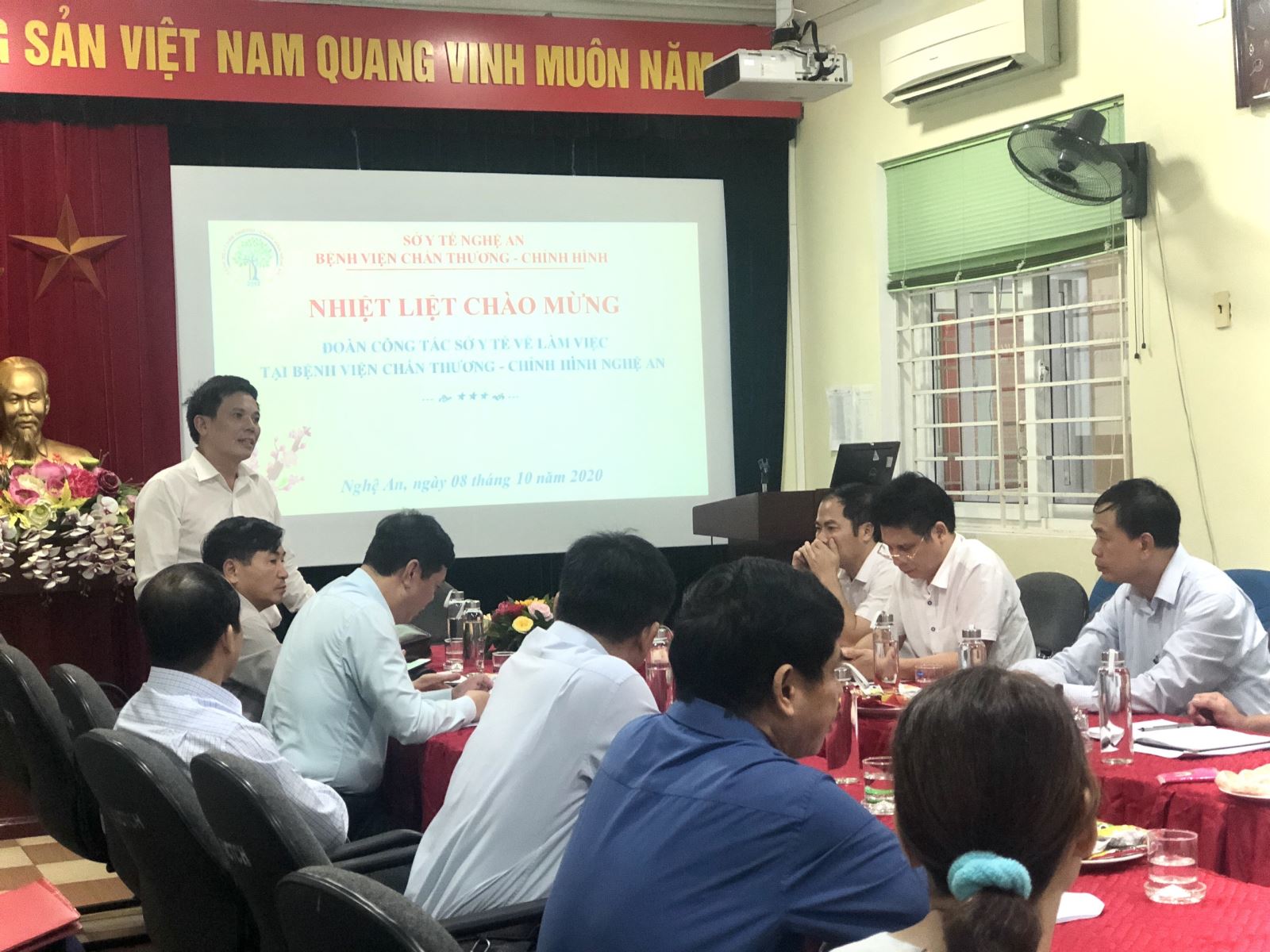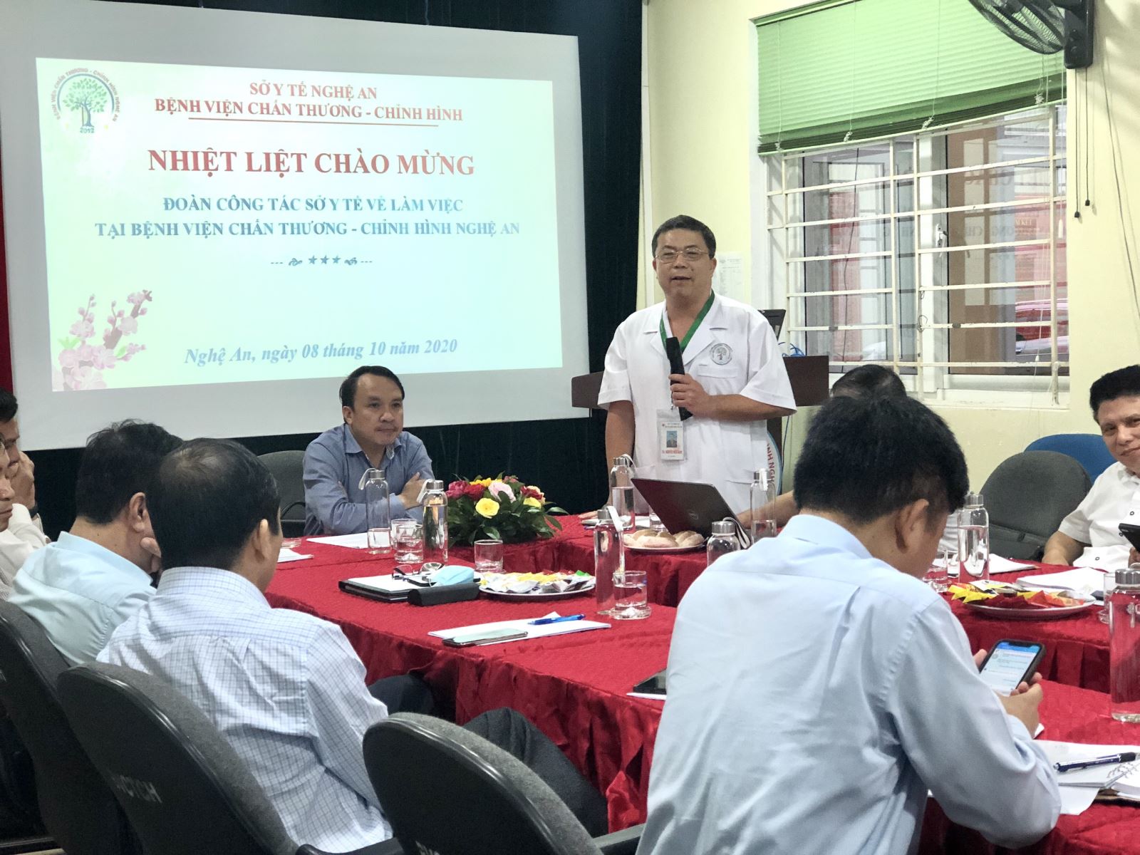 Phát biểu tại buổi làm việc, đồng chí Giám đốc Sở Y tế đã ghi nhận, đánh giá cao những thành quả mà Bệnh viện Chấn thương chỉnh hình Nghệ An đã đạt được trong công tác chăm sóc bảo vệ sức khỏe nhân dân, đáp ứng nhu cầu khám, chữa bệnh xứng tầm bệnh viện chuyên khoa tuyến Tỉnh. Tiên phong triển khai thành công nhiều kỹ thuật cao, kỹ thuật tuyến trung ương, Bệnh viện đã đem lại hiệu quả tốt trong chẩn đoán và điều trị cho người bệnh. Bên cạnh đó, Bệnh viện đã và đang cải tạo nâng cấp cơ sở vật chất, đầu tư trang thiết bị. Đặc biệt, trong thời gian gần đây, Bệnh viện đã đưa vào hoạt động khu vực phòng khám – cấp cứu mới khang trang, hiện đại, đáp ứng hiệu quả nhu cầu khám bệnh của người dân.