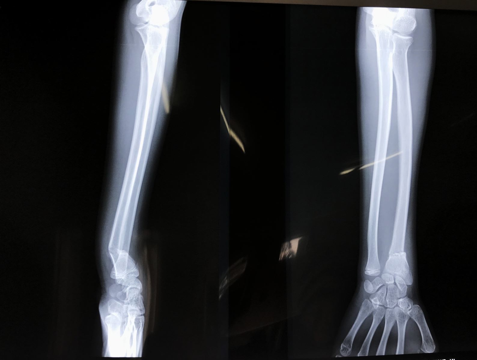 + Gãy xương quay 2 tầng, 1 ổ gãy ở hành xương, 1 ổ gãy bong sụn tiếp hợp, có nguy cơ hàn sụn tăng trưởng