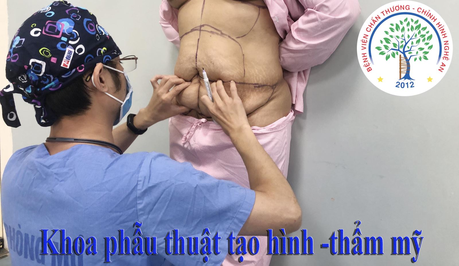 Chị N.T.M., 43 tuổi, tại TP. Vinh tìm đến Khoa Phẫu thuật tạo hình thẩm mỹ - Bệnh viện Chấn thương Chỉnh hình Nghệ An với da bụng xấu,bụng quá to, mỡ thừa nhiều, sẹo mổ cũ rất xấu.